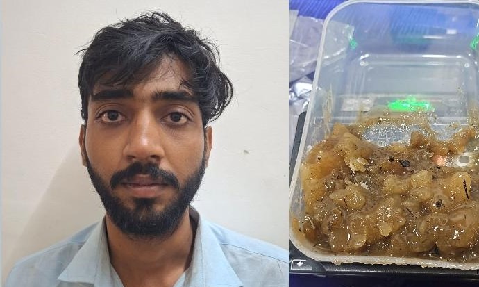 शनिवारी रात्री उशिरा पोलीस उपनिरीक्षक डॉ. दिपक हिंडे, पोलीस हवालदार अनिल पाटील, धर्माधिकारी, स्वप्निल काटे, पोलीस शिपाई साजिद शेख, कालिदास खुडे आदी पोलीस पथक वरिष्ठांच्या आदेशावरुन गस्त घालत होते. रात्री साडेबारा वाजता मालाडच्या मालवणी, मार्वे रोड, साईबाबा मंदिरासमोर एक तरुण संशयास्पद फिरत होता. त्यामुळे त्याला पोलिसांनी हटकले असता तो पोलिसांना पाहताच पळू लागला. यावेळी पोलिसांनी त्याला पाठलाग करुन त्याला ताब्यात घेण्याचा प्रयत्न केला. मात्र त्याने पोलिसांवर हल्ला करुन सरकारी कामात अडथळा आणण्याचा प्रयत्न केला, मात्र पोलिसांनीही बळाचा वापर करुन त्याला चौकशीसाठी ताब्यात घेतले. त्याच्याकडील सामानाची तपासणी केल्यानंतर त्यात पोलिसांना 1 किलो 157 ग्रॅम वजनाचे व्हेल माशांची उलटी सापडली.