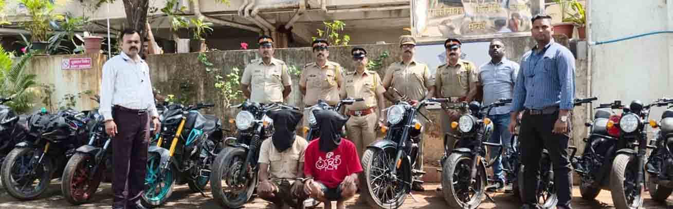 याच दरम्यान तिथे आलेल्या मिराज खान आणि उमेर शेख या दोघांना पोलिसांनी संशयित आरोपी म्हणून ताब्यात घेतले होते. चौकशीत त्यांनीच तक्रारदाराची बाईक चोरी केल्याची कबुली दिली. या बाईकसह त्यांनी इतर पोलीस ठाण्याच्या हद्दीतून दहा बाईक चोरी केल्याचे सांगितले. त्यानंतर त्यांच्याकडून चोरी केलेल्या अकरा स्पोटर्स बाईक पोलिसांनी जप्त केल्या असून त्याची किंमत 23 लाख 89 हजार रुपये इतकी आहे. यातील मिराज हा मूळचा उत्तरप्रदेशच्या संत कबीर नगर, खालिलाबादचा रहिवाशी असून सध्या तो दहिसर, दहिसर नाका परिसरात राहतो तर उमेर हा धुळ्याचा गुगर कंपाऊडचा रहिवाशी आहे.