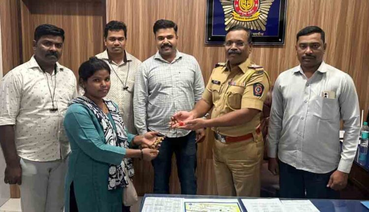 मुंबई, – कांदिवली रेल्वे स्थानक ते महिंद्रा येलोगेट असा रिक्षाने प्रवास करताना रिक्षात विसरलेली बॅग काही तासांत शोधून ती बॅग समतानगर पोलिसांनी संबंधित महिलेच्या स्वाधीन केले. या बॅगेत साडेतीन लाखांचे दागिने आणि सात हजार रुपयांचे नवीन कपडे होते. रिक्षात विसरलेली बॅग आणि आतील मुद्देमाल परत मिळाल्याने या महिलेने वरिष्ठ पोलीस निरीक्षक अनिल पाटील व त्यांच्या पथकाचे आभार व्यक्त केले. या कामगिरीबाबत पोलीस उपायुक्त स्मिता पाटील यांनीही या पोलीस पथकाचे कौतुक केले होते.