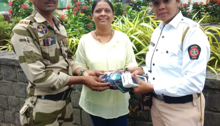 मुंबई, – केईएम हॉस्पिटलमध्ये कार्यरत असलेल्या एका डॉक्टर महिलेचे रिक्षात विसलेले सहा तोळे सोन्याचे दागिने आणि वीस हजार रुपयांची कॅश काही तासांत समतानगर वाहतूक पोलीस ठाण्याच्या महिला अंमलदार संगीता शिवाजी चव्हाण आणि महाराष्ट्र सुरक्षा बलाचे विकास राठोड यांनी परत मिळवून दिले. काही तासांत संपूर्ण मुद्देमाल परत मिळवून देणार्या संगीता चव्हाण यांचे सर्वत्र कौतुक होत आहे.